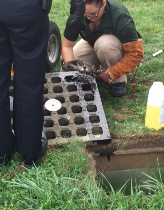 Luckily, it wasn't long before an animal control officer was able to slip him safely out of the drain.